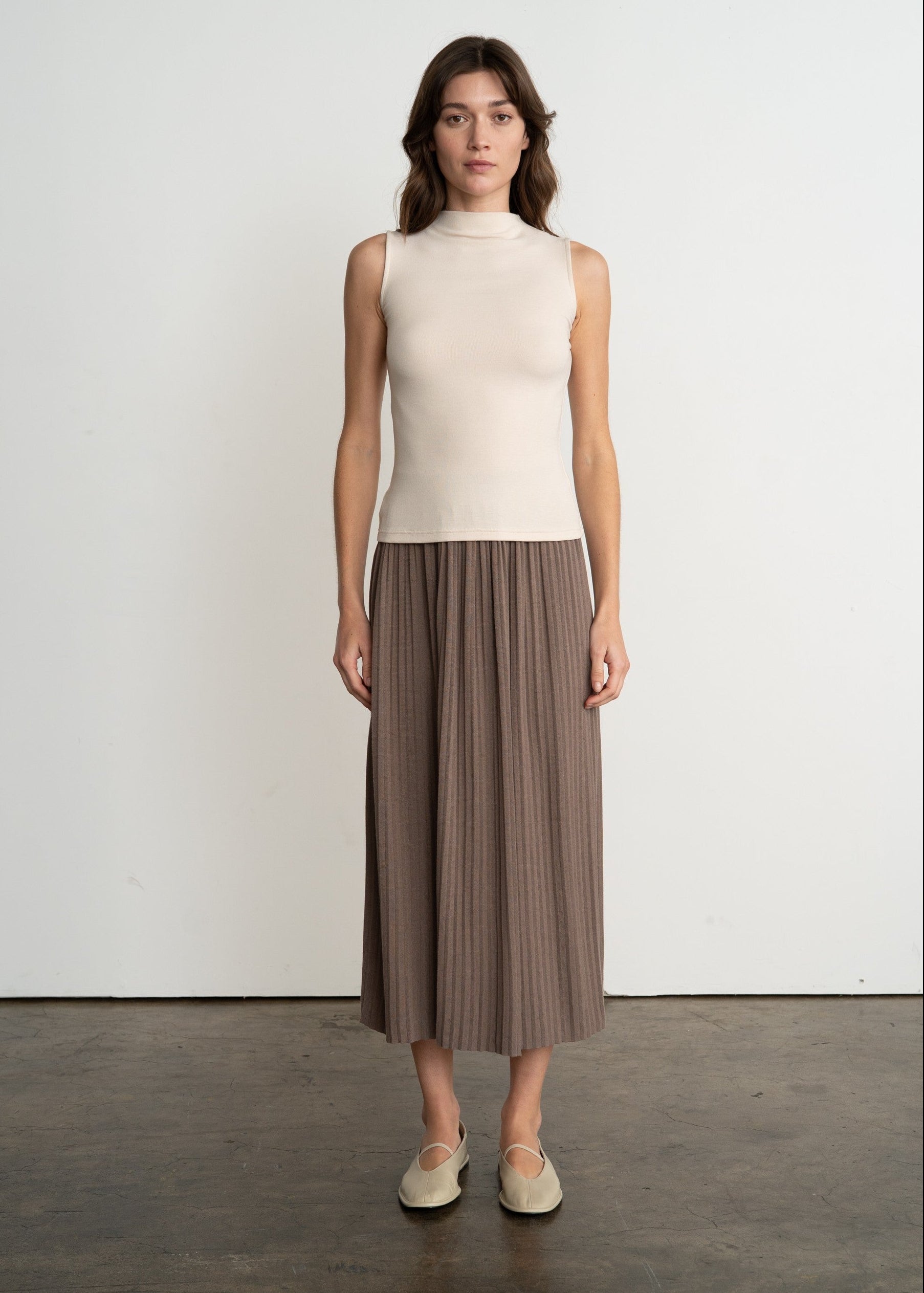 ELASTIC PLEATED MIDI SKIRT